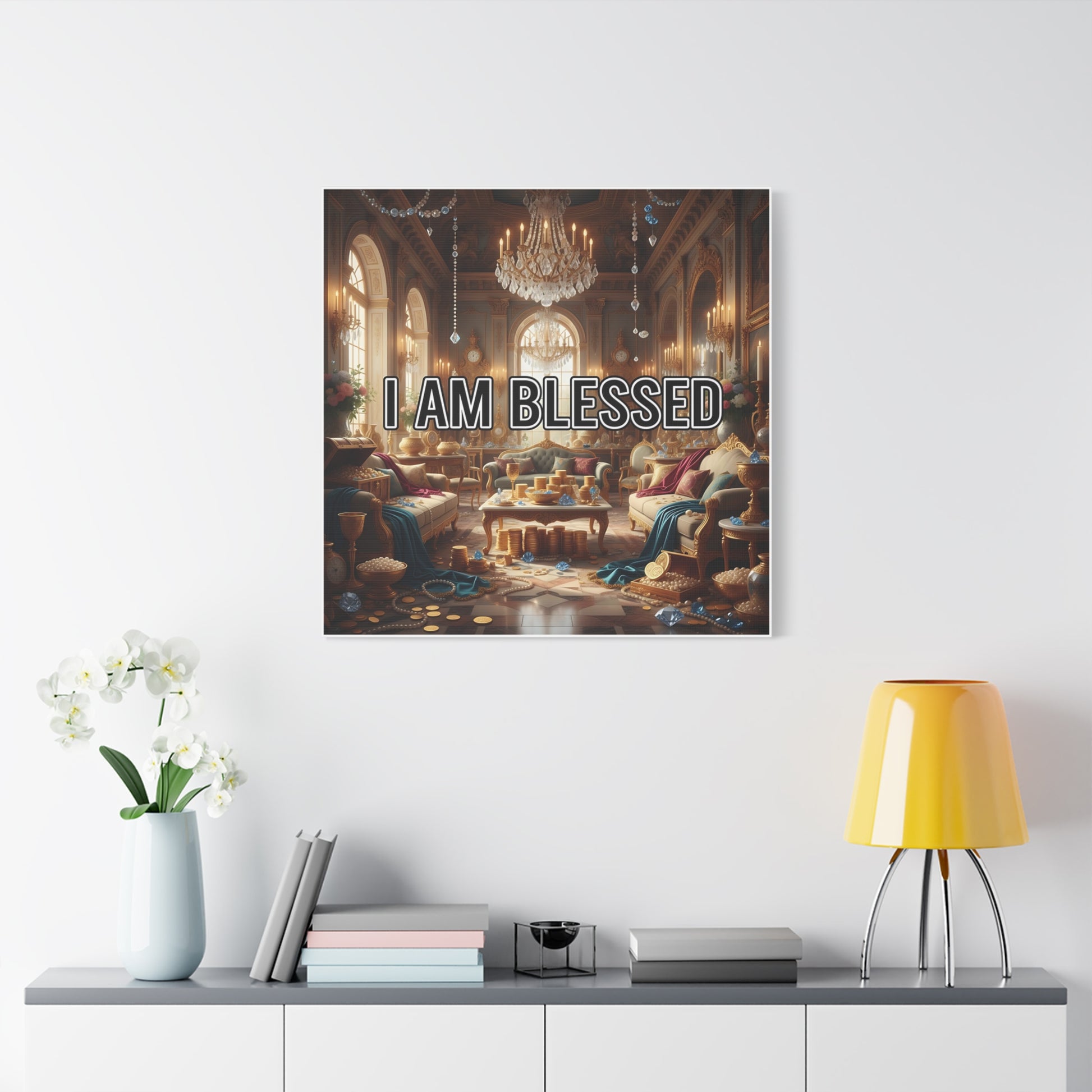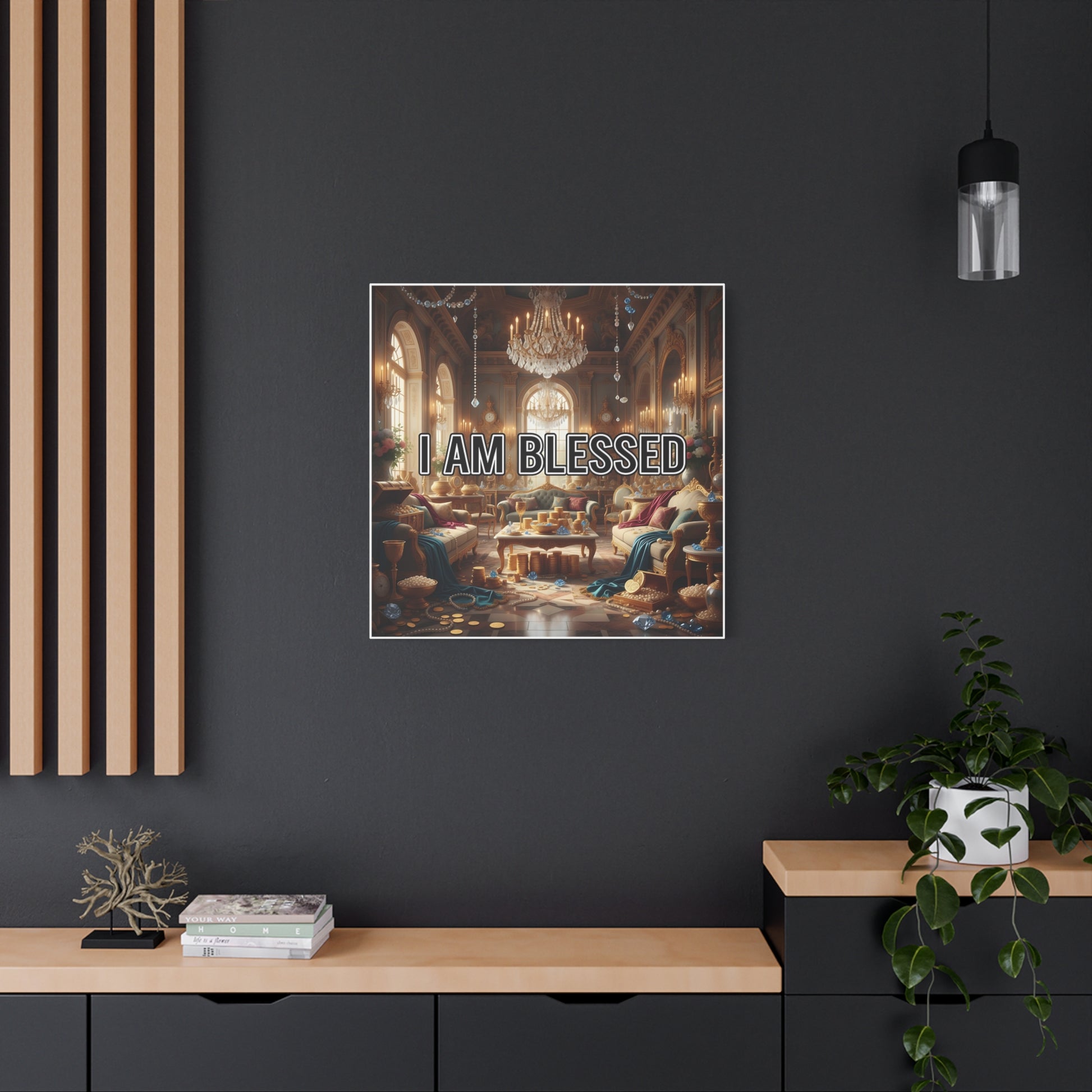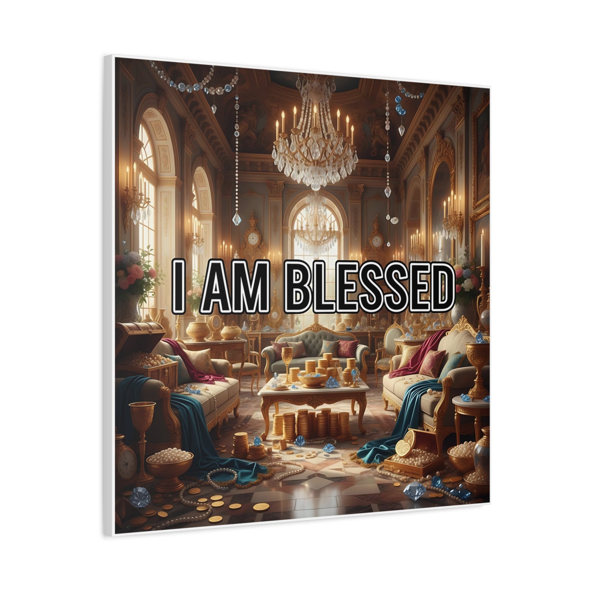 Elevate your space with this stunning Matte Canvas that embodies warmth and gratitude. The artwork features a cozy, luxurious setting with the uplifting phrase 'I AM BLESSED', creating an atmosphere of abundance and positivity. This piece is perfect for anyone looking to enhance their home decor with a touch of inspiration. Ideal for those who appreciate art that resonates with themes of thankfulness and joy, it fits beautifully in living rooms, bedrooms, or even office spaces. This canvas is a fantastic gift for holidays like Thanksgiving, or celebratory occasions like housewarmings, and serves as a thoughtful reminder of life's blessings.