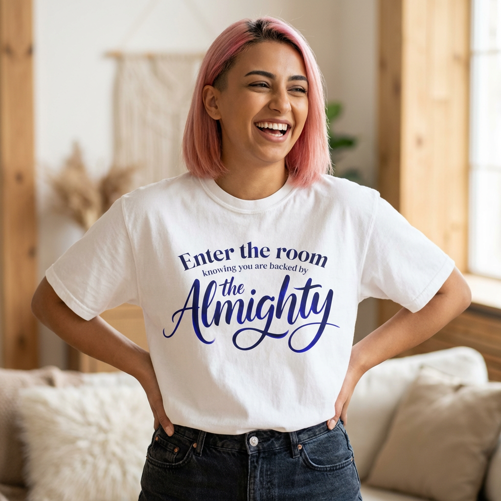 Christian Faith T-Shirt — "Enter the Room Knowing You Are Backed by the Almighty"