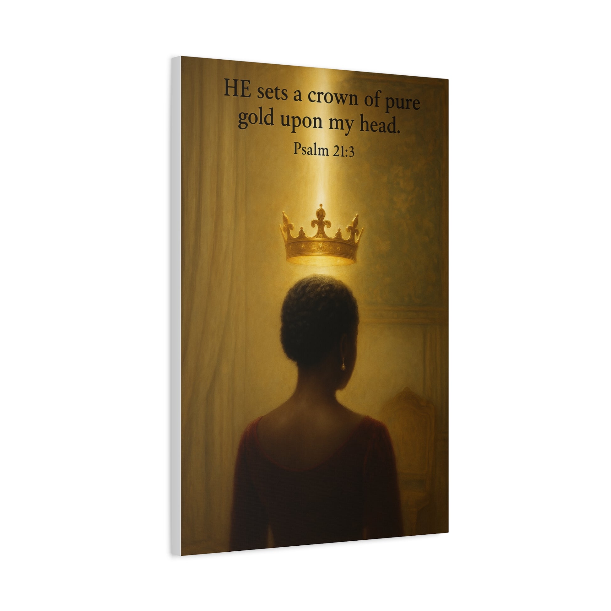Transform your space with this stunning Matte Canvas, perfectly designed to inspire and uplift. Featuring an ethereal image with the quote 'HE sets a crown of pure gold upon my head. Psalm 21:3', this canvas exudes a serene, reflective vibe that will enhance any room in your home. It's perfect for those seeking a daily reminder of strength and grace, making it an ideal gift for friends and family on occasions such as housewarmings, birthdays, or religious celebrations. This lovely piece fits seamlessly into living rooms, bedrooms, or offices, providing a tranquil atmosphere wherever it’s hung.